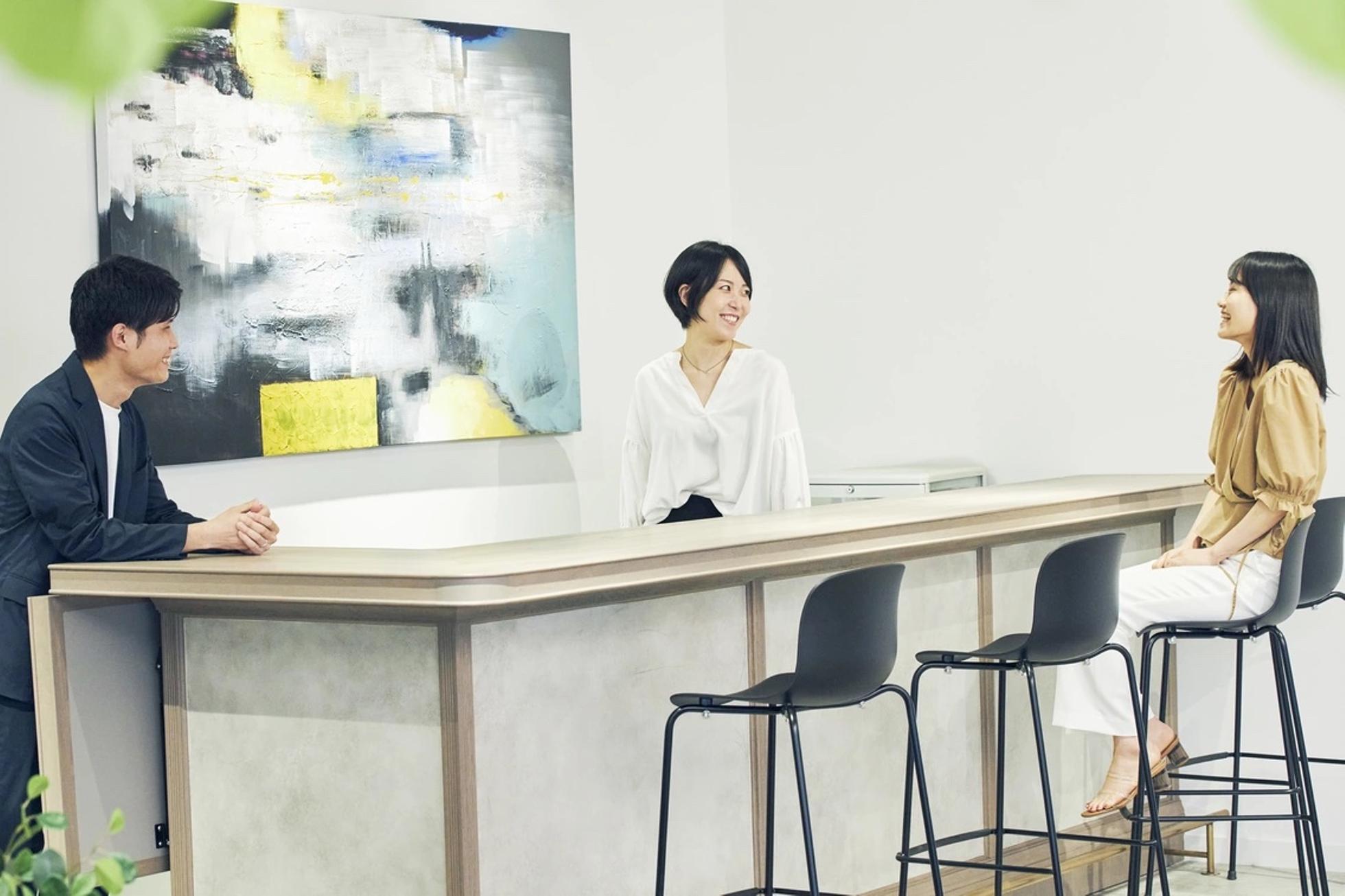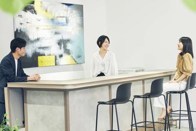 オフィスではコミュニケーションが活発に行われており、至る所で議論が交わされています。