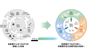 産業廃棄物のリサイクルなどを通じてサステナブルな企業経営をコンサルティングする【産業のReデザイン】。自治体などからの依頼を受け、地域社会の自立と資源循環の基盤をつくる【暮らしのReデザイン】。
