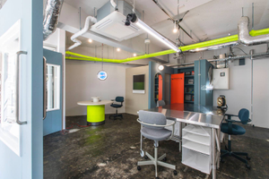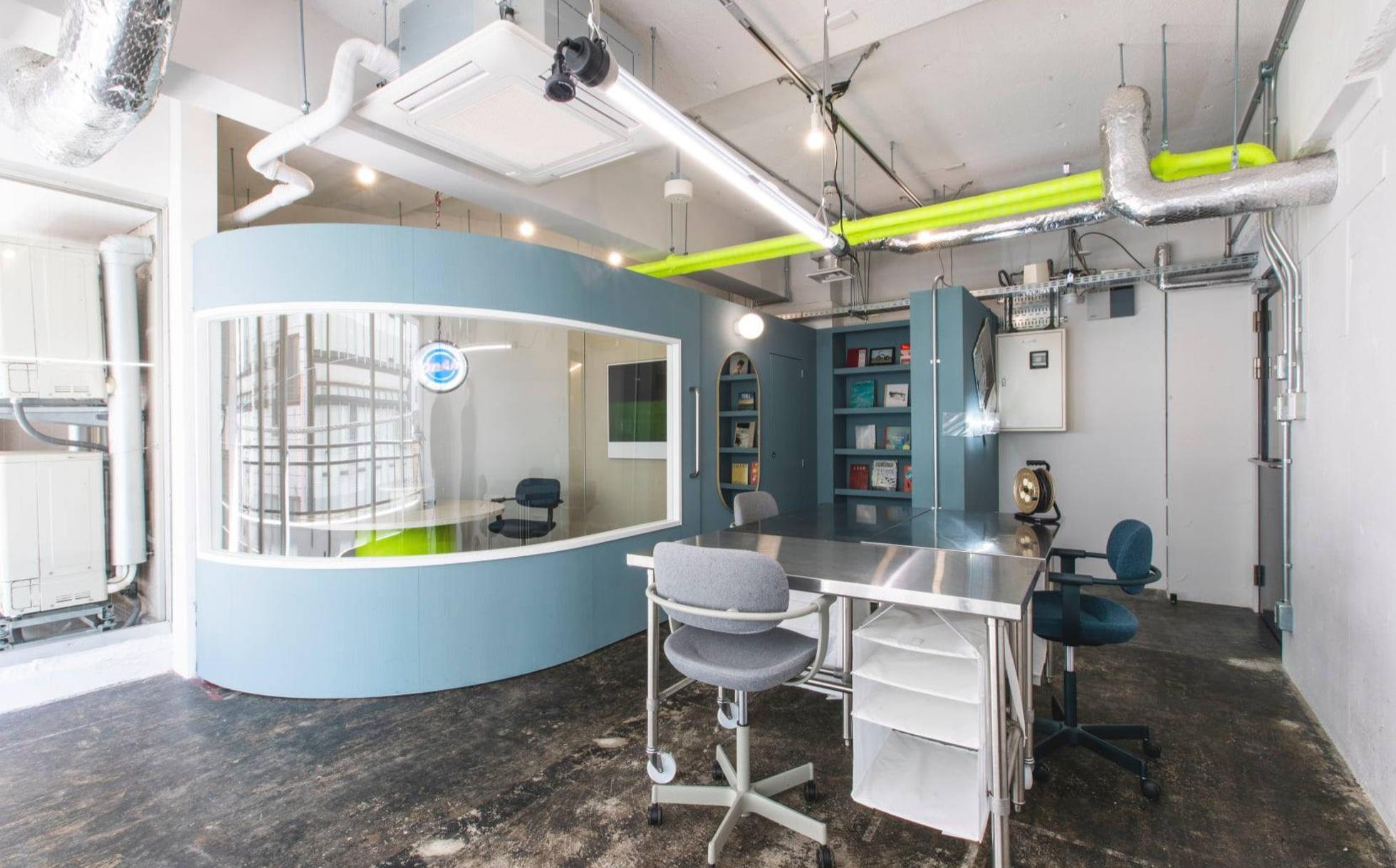 開閉式の大きな間仕切りが特徴のオフィスです。