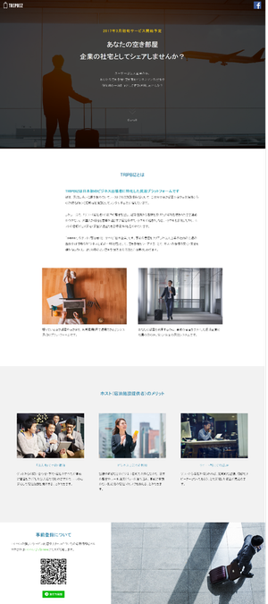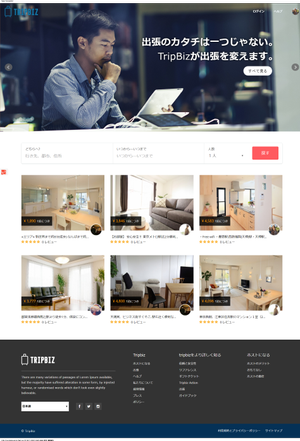 【TripBiz(トリップビズ)とは】 眠っている空き家・空き部屋と、出張や研修などの目的で宿泊先を探しているビジネスパーソンを繋ぐ、日本初のビジネス利用に特化した民泊予約サイトです。