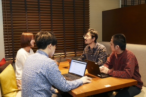MTGの一コマ。テレワークも導入し働きやすい環境を整備しています。