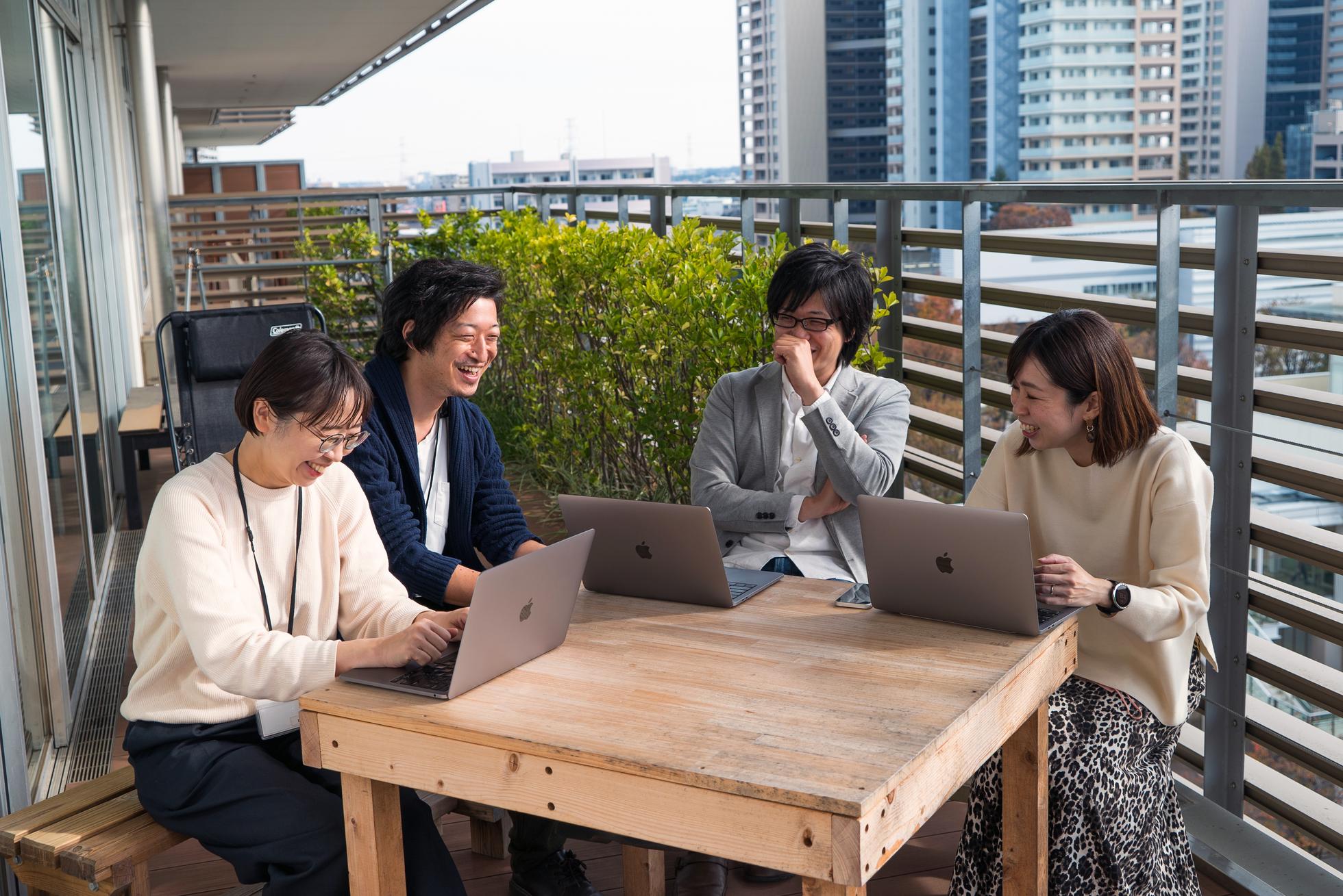柏の葉オフィスの畳スペース。ベランダの開放感とマンガが特徴的。