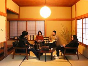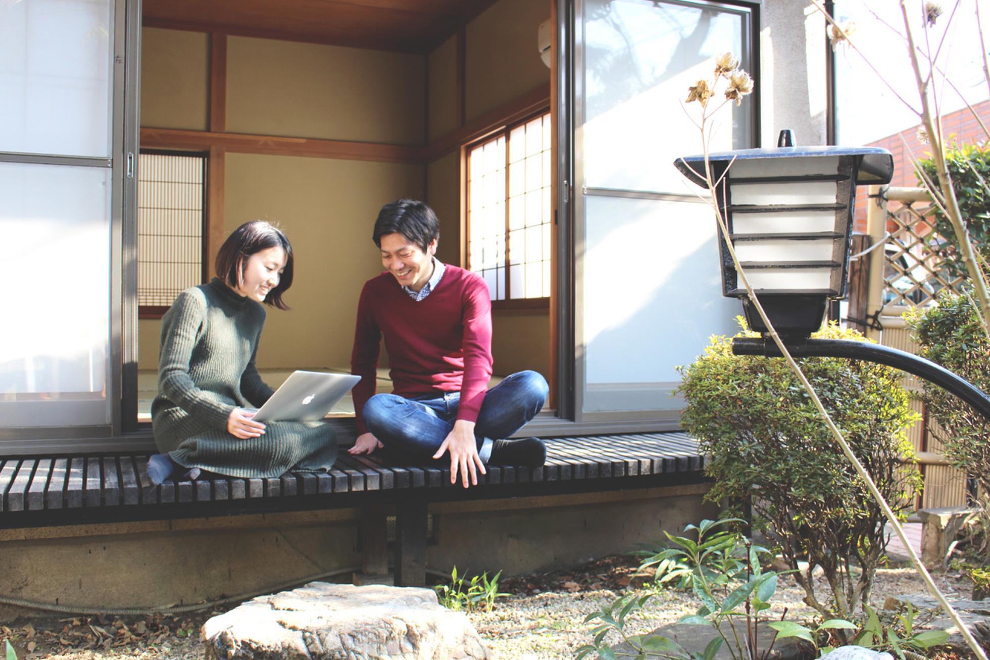 オフィスは、目の前がお寺、周囲が住宅街、庭にたぬきのあるのどかな場所。思案するのに向いています。