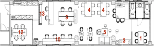 縦になが〜いオフィスです。2022年4月にCIである「交ぜる、はじまる」を空間で表現したレイアウト・家具に一新しました!