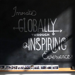 会社のスローガンが書かれたオフィスの黒板