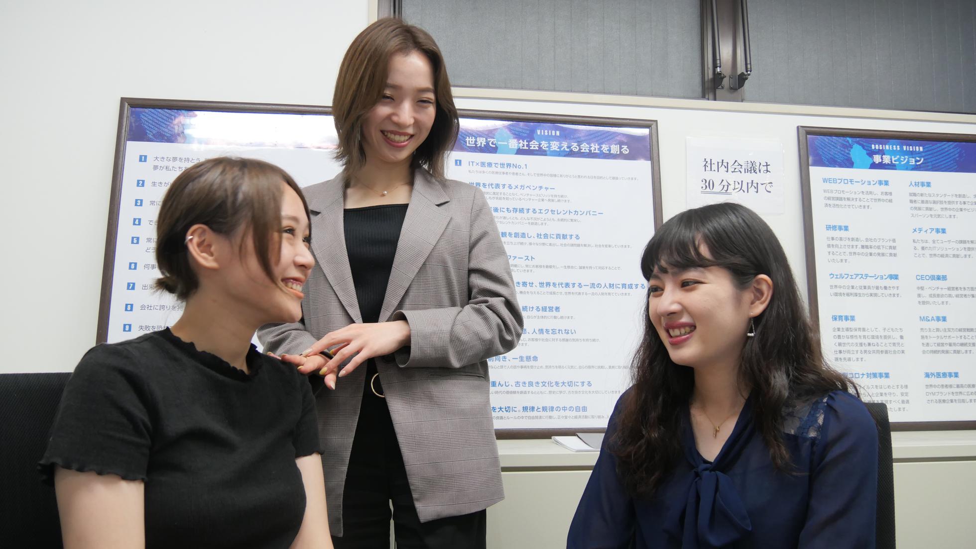株式会社DYMの始まりは、社長の水谷佑毅が医学部時代にお小遣い稼ぎを目的としてWEBのメディア事業を始めたことがきっかけです。 水谷は大学卒業し、同時に医師免許を獲得した際に、自身が育てたWEBのメディア事業をすべて売却し、その資金を元手に開業医になろうと決意しておりました。 しかし、そこで水谷は医療現場のIT化があまりにも遅れている事態に気がつきます。 考えた末に水谷は、まだ整っていないIT×医療の業界で世界最高水準のサービスを生み出していくことがより社会貢献性が高いのではないかと考えました。 医師の道に進むため勉強してきた水谷だからこそ気づけた医療業界の問題を、株式会社の社長として自身で解決する道を選択し、当時流れに乗っていたWEBメディア事業の社名をDYM(ドクター・ユウキ・ミズタニ)に変更したのが 株式会社DYMの起業背景です。 今では創業から2021年の5月で19期目を迎え、18期連続で売上も従業員数も急成長。グループ全体で180億円・従業員数8000名を越えました。 私たちDYMが目指す、様々な社会問題を解決する 『世界で一番社会を変える会社を創る』 壮大すぎる目標だと思いますか? しかし現在、世界に名だたるソニーもホンダもトヨタも、 立ち上げ時は当社DYMのようなベンチャー企業でした。 だから私たちDYMは、目指します。 DYMならではの高い技術力と一人ひとりの熱い思いをもって。