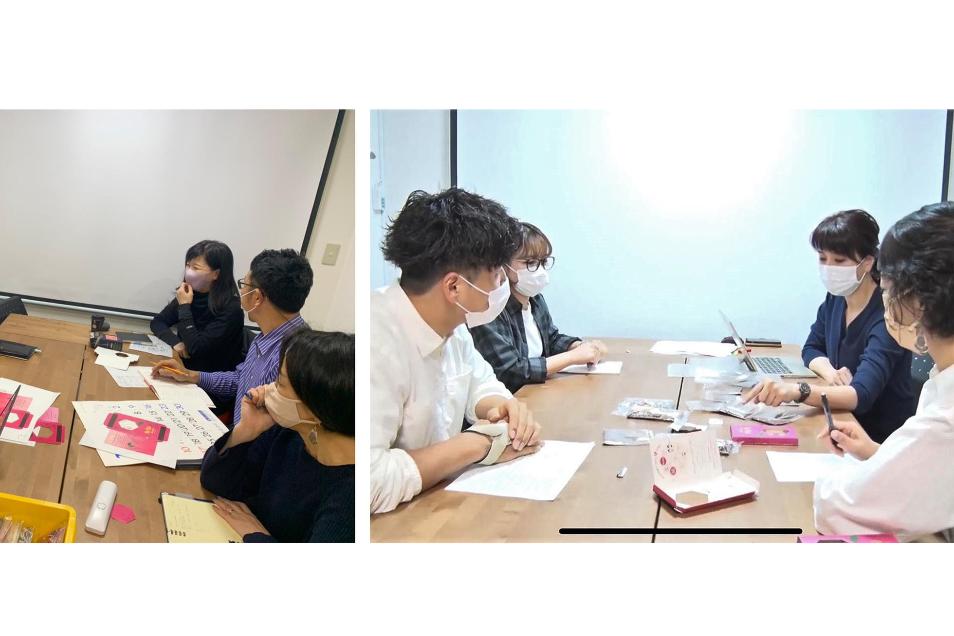 ロスゼロのアップサイクルブランド「Re:YOU」についてのミーティングの様子。社員、アルバイト関係なく、みんなが意見を言い合える風通しの良い社風です。