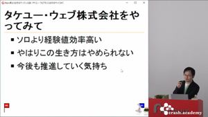 タケユー・ウェブ株式会社代表取締役兼エンジニア。 フリーランスのウェブエンジニアとして活動した後、ひとりでできることの限界を感じ2016年に法人成り。フリーランスとしての自由な働き方が大好きで、そんな自分でも働ける会社を作ろうとしている。 開発の仕事ではRuby(Ruby on Rails)をメインに、Perl、PHP、JavaScript(React)あたりをいじってることが多く、AWS上に構築したインフラの保守管理なども行っている。 東京のRuby勉強会を中心に積極的に発表するなど、コミュニティ活動も精力的に行っている。