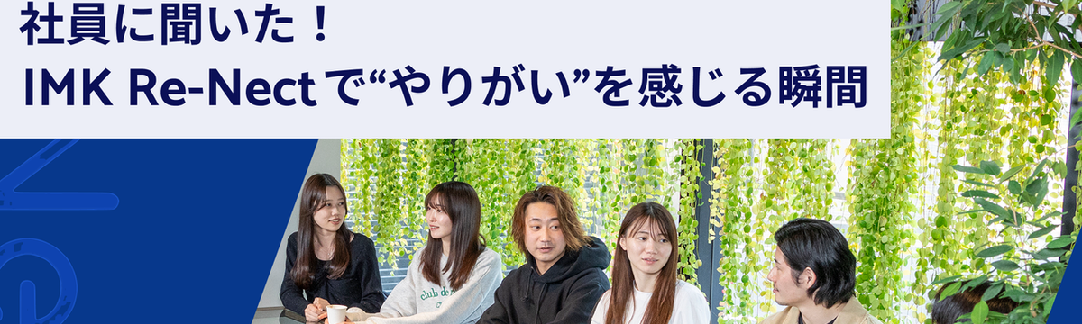 株式会社IMK Re-Nect 約2ヶ月前 フォロー 榊原 由乃 働くリアルを聞きました!IMK Re-Nectで“やりがい”を感じる瞬間 みなさまこんにちは!株式会社IMK Re-Nect採用担当です。数多くの記事の中からご覧いただきまして、誠にありがとうございます。今回は、IMK Re-Nectで働くメンバーが日々感じているやり... もっと見る