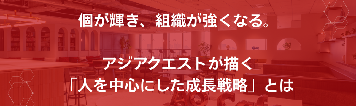文化・風土 7日前 フォロー Chihiro Ozaki 個が輝き、組織が強くなる。アジアクエストが描く「人を中心にした成長戦略」とは こんにちは!アジアクエスト採用広報担当です。本日はアジアクエストの組織づくりの考え方についてお伝えいたします。私たちアジアクエストが目指すのは、社員一人一人の能力を最大限に発揮しながら事業を大き... もっと見る