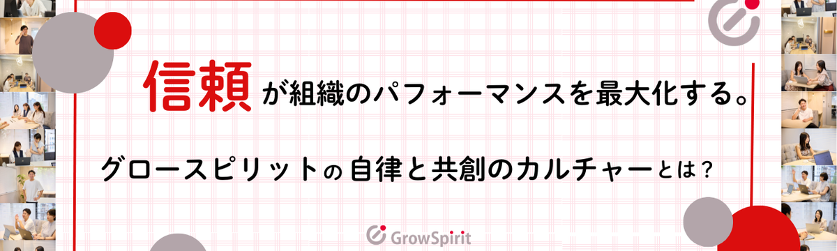 株式会社グロースピリット 7日前 フォロー 田口 由依 信頼が組織のパフォーマンスを最大化する。グロースピリットの自律と共創のカルチャーとは? こんにちは!グロースピリット採用担当の田口です。今回は、グロースピリットが誇る『自律と共創を最大化するカルチャー』についてご紹介をします。ぜひ、最後までお読みいただけると嬉しいです。1.ルールは... もっと見る