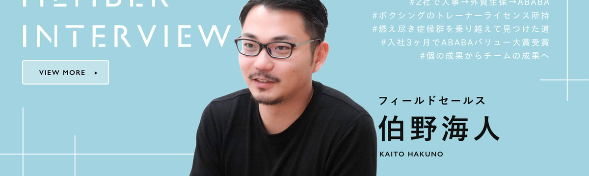 株式会社ABABA 4日前 フォロー ABABA 採用担当 「稼ぎたい」が軸だった僕が、入社3ヶ月で「人のため」に本気になった話【フィールドセールス社員インタビュー】 「県予選一回戦敗退も、全国準優勝も、優勝者以外はみんな敗者だ」ボクシングで培った哲学をそう語るのは、外資系生命保険会社で個人の成果を徹底的に追求した後、ABABAへジョインした伯野さん。前職とは... もっと見る