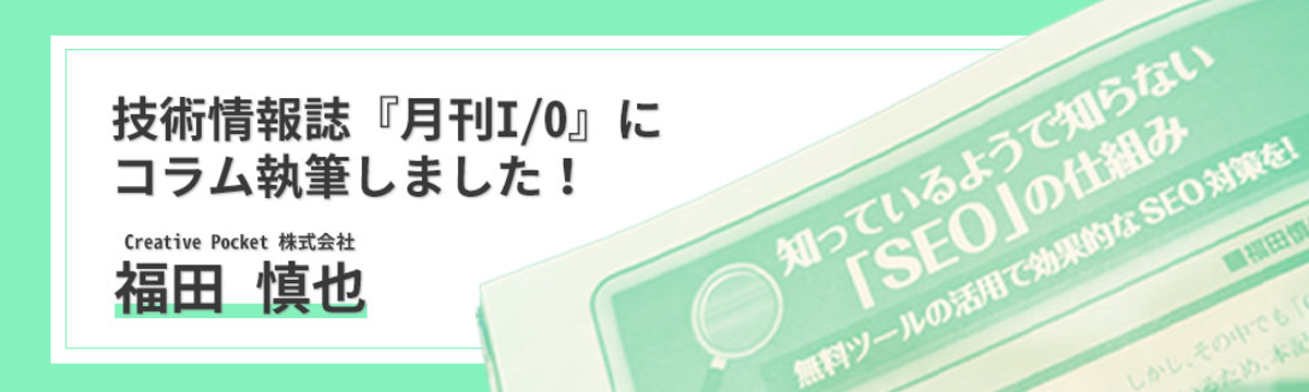 Creative Pocket株式会社 3年弱前 フォロー 浅野 博子 技術情報誌『月刊I/O』にコラム執筆しました! 『知っているようで知らない「SEO」の仕組み〜無料ツールの活用で効果的なSEO対策を!〜』というタイトルで、初心者でもSEOの仕組みを理解し、SEOを向上させるための4つの無料ツールについてお伝... もっと見る