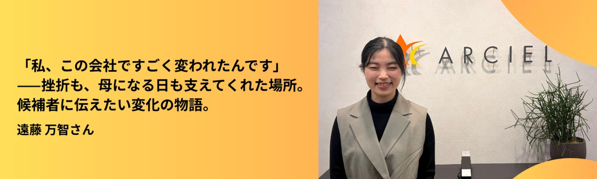 株式会社アルシエ 7日前 フォロー 株式会社 アルシエ 「私、この会社ですごく変われたんです」——挫折も、母になる日も支えてくれた場所。候補者に伝えたい変化の物語。 株式会社アルシエは保険・金融・不動産業界に特化した人材サービス会社です。『すべてのお客様と共に歩み、前進を支える。』をコーポレートミッションに、事業の成長、新分野への挑戦、課題の解決など、お客様... もっと見る