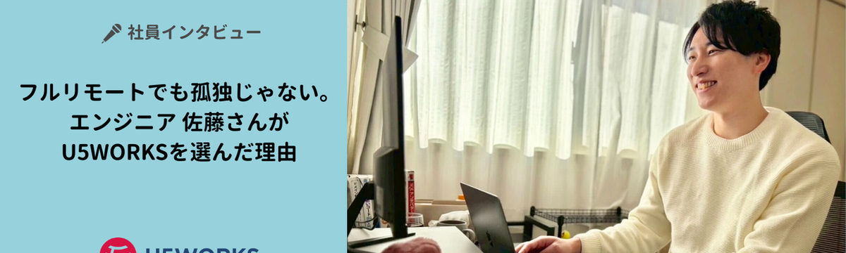 株式会社U5WORKS 21日前 フォロー 高田 桃衣 他1人 フルリモートでも孤独じゃない。エンジニア 佐藤さんがU5WORKSを選んだ理由 こんにちは、株式会社U5WORKSの採用広報です。今回は、弊社コアプロダクト「デイロボ」のサーバーサイド開発を担うエンジニア・サブリーダーの佐藤 慶多(さとう けいた)さんをご紹介します。フルリ... もっと見る