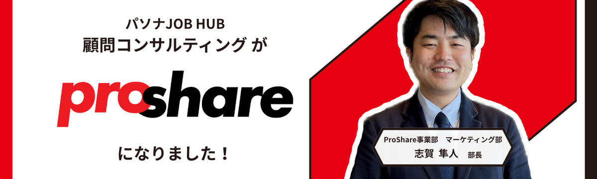 株式会社パソナJOB HUB 28日前 フォロー 髙松 玲花 他1人 【独占インタビュー】新サービス名「ProShare」に込めた想い:マーケティング部長が語る2.8兆円市場への挑戦 こんにちは、採用担当の髙松です!この度、2025年11月より当社サービスの「JOB HUB顧問コンサルティング」は、ブランディングを新たにし、「ProShare(プロシェア)」へと名称を改めまし... もっと見る