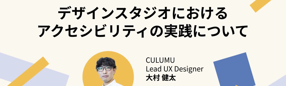 株式会社STYZ 約6時間前 フォロー 片山 紗也茄 「デザインスタジオにおけるアクセシビリティの実践について」/大村 健太(CULUMU) ※こちらの記事はCULUMU公式noteからの転載です(2024年3月29日掲載)自己紹介大村:CULUMUでUXデザイナーとして働いている大村健太と申します。普段はBtoBサービスの設計やデザ... もっと見る