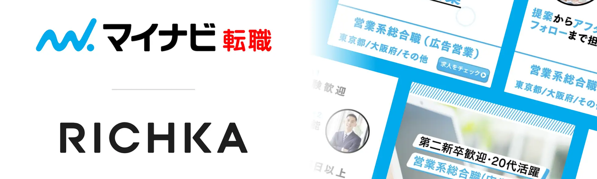 株式会社リチカ 2年以上前 フォロー 株式会社リチカ 採用担当 「リチカ」と「マイナビ転職」求人の動画広告商品『ムービーアドパッケージ』を共同企画! 「リチカ」×「マイナビ転職」求人の動画広告商品『ムービーアドパッケージ』を共同企画しました!この度、株式会社マイナビ様の運営する総合転職情報サイト「マイナビ転職」と、「リチカ ビジネスパートナー... もっと見る