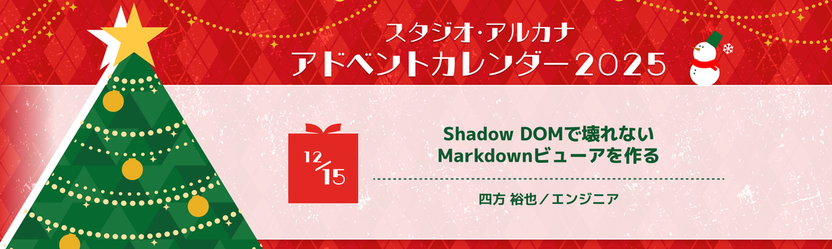 株式会社スタジオ・アルカナ 4ヶ月前 フォロー 四方 裕也 Shadow DOMで壊れないMarkdownビューアを作る スタジオ・アルカナの しかた です。最近業務で、アプリに Markdown プレビュー機能を作る際にアプリ全体の CSS が干渉してデザインが崩れそうという問題がありました。コードブロックや 引... もっと見る