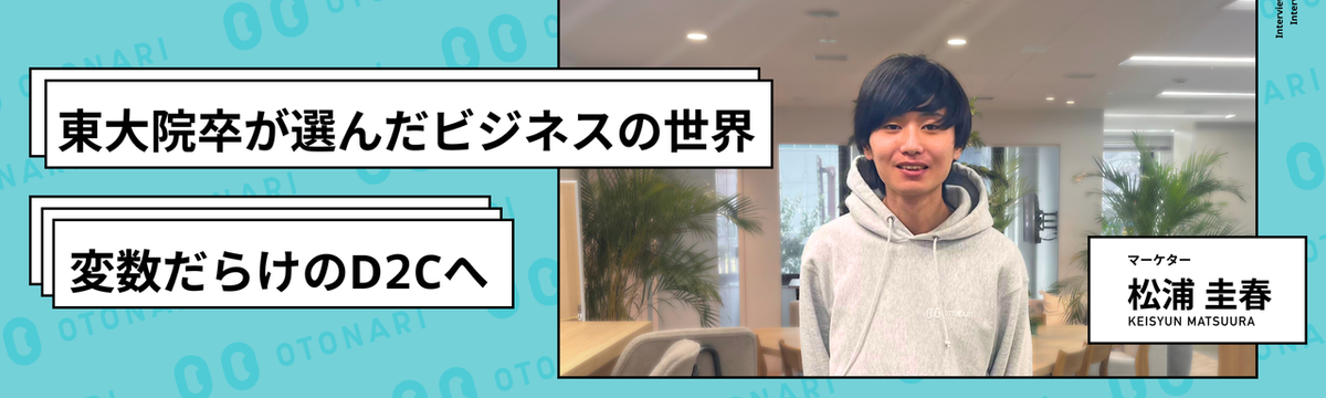 株式会社OTONARI 約7時間前 フォロー OTONARI 公式 【メンバーインタビュー】東大院からD2Cベンチャーへ。正解のない問いに向き合い、自らの手で「売れるロジック」を創り出す 東京大学・大学院での研究に没頭した日々。卒業後、新卒として一歩を踏み出したのは、変化と刺激に満ちたベンチャーの世界でした。OTONARIグループのD2C事業を牽引する株式会社YORISOUで、入... もっと見る