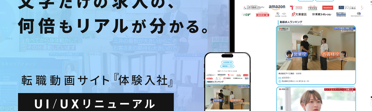 株式会社体験入社 9日前 フォロー 仲谷 崚 転職した3人に1人が「想像と違った」と後悔。文字だけの求人が生む“ギャンブル転職”に終止符を——転職動画サイト『体... 株式会社体験入社(本社:神奈川県鎌倉市、代表取締役:松本聖司)は、この度、転職動画サイト『体験入社』のUI/UXを全面刷新したことをお知らせいたします。求人の文字情報だけを頼りに「年収」「キャリ... もっと見る