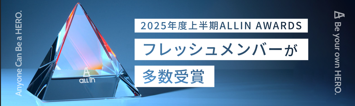 ALLIN|レポート 8日前 フォロー 西村 ちか 【2025年上半期ALL-IN AWARDS】フレッシュメンバーが多数受賞 こんにちは。ALL-INライターの西村です。以前こちらの記事でご紹介した社内表彰制度「ALL-IN AWARDS」ですが、先日10月に2025年上半期の結果が発表されました。今回は、その受賞内容... もっと見る