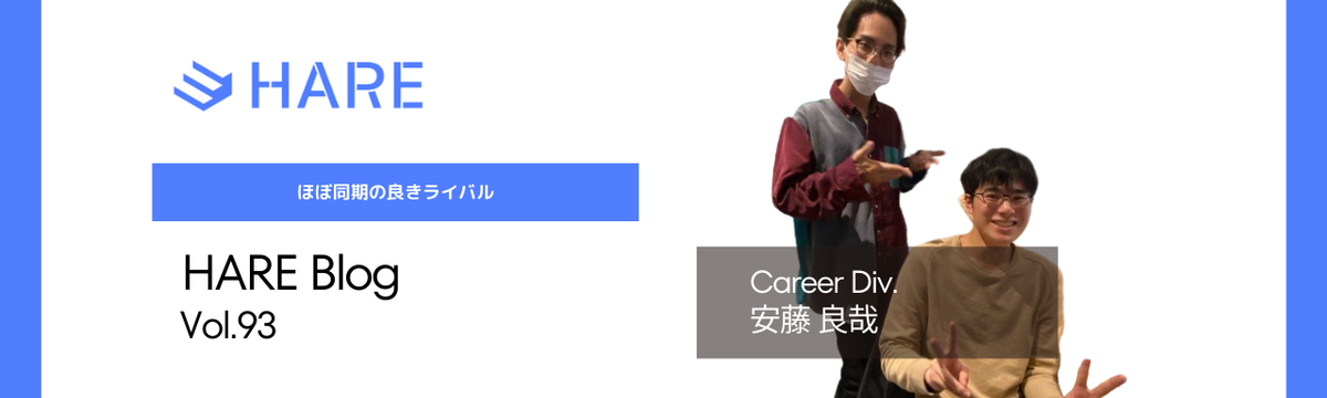 他者紹介 9ヶ月前 フォロー 越山 弘輝 他1人 HAREのスーパーアシスタント! こんにちは!HAREの越山です!皆様お久しぶりですねー本日は同じ部署の﨑代さんについて投稿いたします!メンバーからは﨑代さんと呼ばれている方が多いですが、一部「さくちゃん」と呼んでいる方もおり、... もっと見る