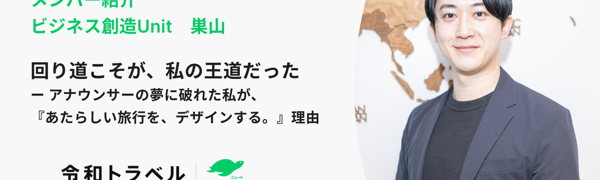 株式会社令和トラベル 25日前 フォロー 令和トラベル HR 回り道こそが、私の王道だった ー アナウンサーの夢に破れた私が、令和トラベルで『あたらしい旅行を、デザインする。』理由 はじめに「まさか、自分が旅行業界でこんなにも夢中になるとは、あの頃は想像もしていませんでした」こんにちは、令和トラベルの巣山です。現在、私はビジネス創造Unit ホテル推進グループに所属し、急成... もっと見る