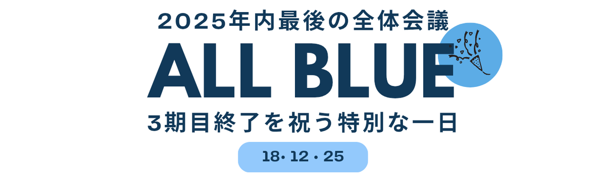 オールブルー株式会社 12日前 フォロー 管理本部 【オールブルー株式会社】年内最後の全体会議を開催!3期目終了を祝う特別な一日 ご覧いただきましてありがとうございます。オールブルー採用担当です。2025年12月18日、私たちは年内最後の全体会議を開催しました。毎月恒例の会議ですが、今回は特別な意味を持っていました。「3期... もっと見る