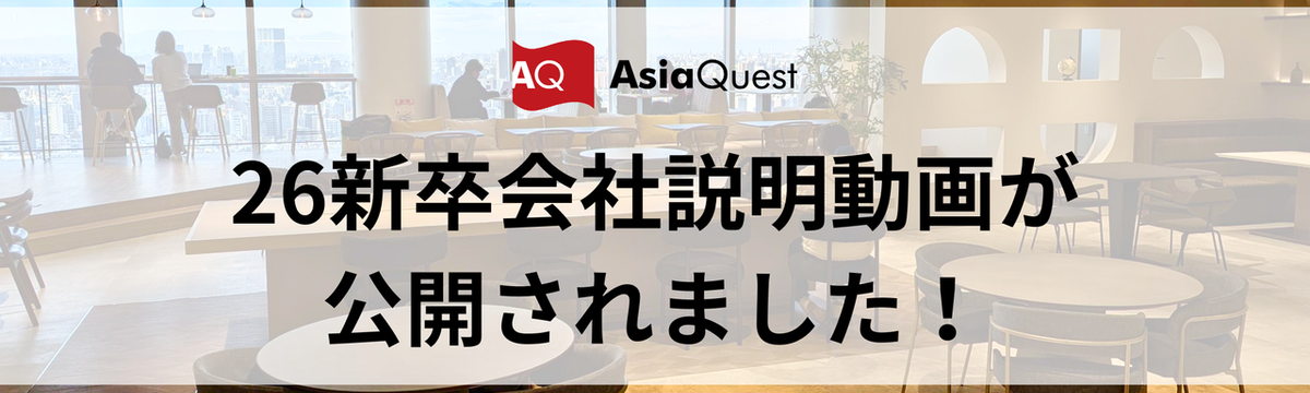 アジアクエスト株式会社 12ヶ月前 フォロー Sonopii 【お知らせ】26新卒会社説明動画が公開されました! 新卒として就職活動をされている皆さまへ先日YouTubeチャンネルにて、26新卒向けの企業説明動画が公開されました!登壇者:菊池啓介デジタルイノベーション部 部長入社6年目、1年目からプロジェク... もっと見る