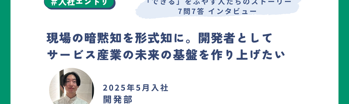 社員インタビュー 12日前 フォロー 加藤恭子 現場の暗黙知を形式知に。開発者としてサービス産業の未来の基盤を作り上げたい ClipLineの個性あふれる新たな仲間が語る、自身のキャリアとClipLineでの挑戦をお届けする「できる」をふやす人たちのストーリー。今回は、開発部のよしあらさんをご紹介します。1.ニックネ... もっと見る