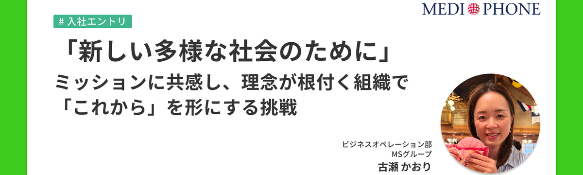 メディフォン株式会社 29日前 フォロー 大和 菜月 「新しい多様な社会のために」。ミッションに共感し、理念が根付く組織で「これから」を形にする挑戦 ごあいさつ・自己紹介はじめまして。2025年11月に入社しました、古瀬です。ビジネスオペレーション部 MSグループで、健康管理システム「mediment」のデータ管理を担当しています。「medi... もっと見る