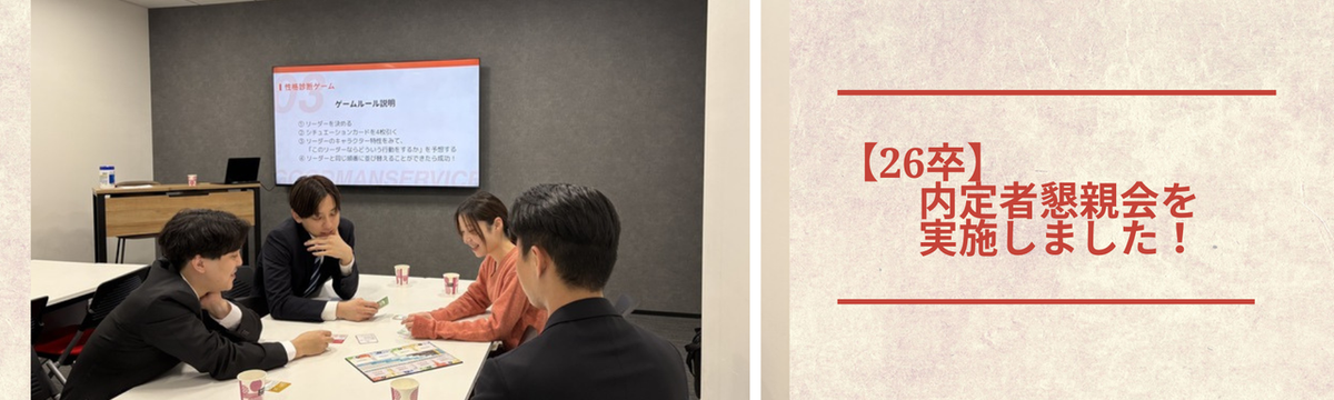 株式会社グッドマンサービス 約1ヶ月前 フォロー 深田 真那 【26卒】第二回内定者懇親会実施! みなさんこんにちは!グッドマンサービスの深田です1/23に、第二回内定者懇親会を行いました!突然ですが、グッドマンサービスでは内定式ではなく、内定者懇親会という形で実施をしております。実はその理... もっと見る