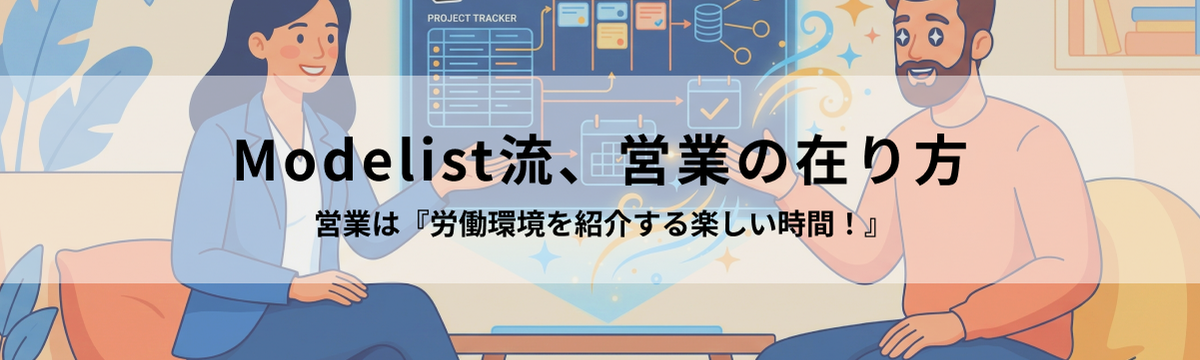株式会社Modelist 2ヶ月前 フォロー 株式会社Modelist 採用担当 Modelist流、営業の在り方 - 営業は『労働環境を紹介する楽しい時間!』 「営業」という仕事に、あなたはどんなイメージを持っていますか?テレアポ、飛び込み、ノルマ、値引き交渉——。世の中には「営業職=つらい仕事」というイメージが根強くあるのではないでしょうか。でも、M... もっと見る