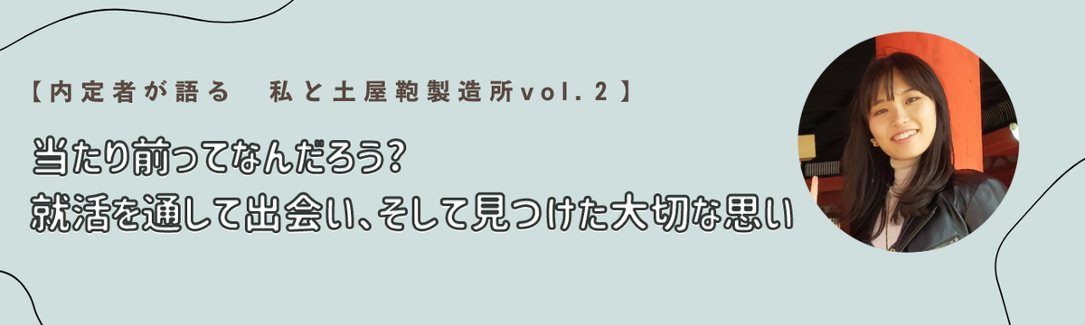 株式会社土屋鞄製造所 4年弱前 フォロー 鈴木 空 【内定者が語る 私と土屋鞄製造所vol.2】 「当たり前ってなんだろう?就活を通して出会い、そして見つけた大切な思い」 土屋鞄の内定者ってどんな人なんだろう…面接の雰囲気はどんな感じなんだろう…。就職活動中にそんなことを思っていた経験から、内定者が実際にどんな学生時代を過ごし、どんな就活をしていたのかを今まさに就... もっと見る
