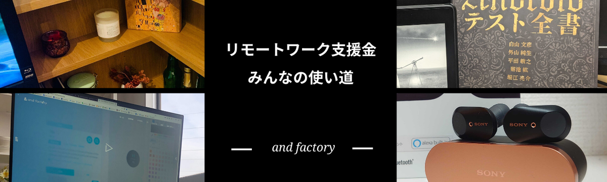 and factory's Blog 5年以上前 フォロー 熊本 薫 リモートワーク支援金 みんなの使い道 新型コロナウイルスの感染拡大で、各々の社員が突然の在宅勤務にシフトする中、and factoryでは全社員に向けて在宅勤務を快適に過ごせるよう「リモートワーク支援金」の給付を始めました。and ... もっと見る