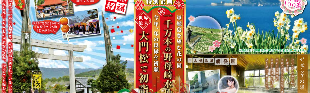 株式会社STEPトラベル 7年弱前 フォロー STEPトラベル 採用担当 STEPトラベル1月開催ツアー「川上峡温泉と橘神社初詣の旅」 STEPトラベルが1月に九州で開催する日帰りバスツアー「川上峡温泉と橘神社初詣の旅」をご紹介します!当ツアーでは、軍艦島を望む一千万本の花園「野母崎水仙」や世界最大の大門松を置いた「橘神社」など... もっと見る