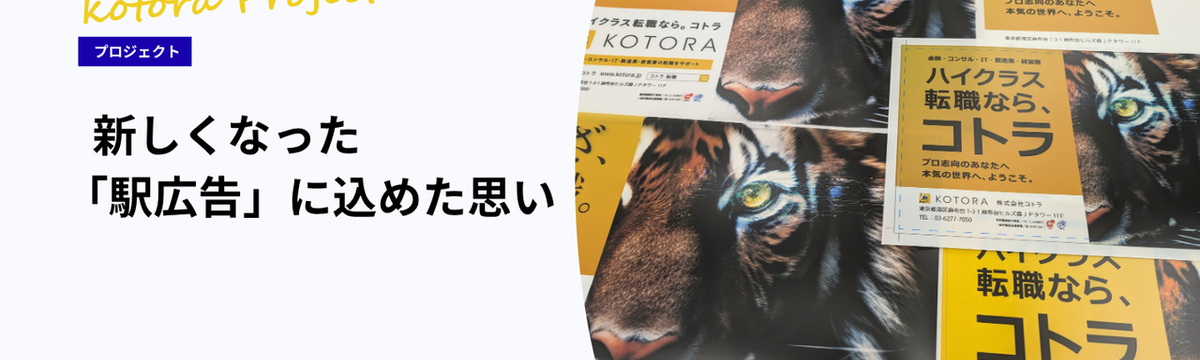 株式会社コトラ 3日前 フォロー コトラ 新卒採用担当 「ハイクラス転職なら、コトラ」を、最大化する。新しい駅広告のデザインに込めた思い 就活生の皆さんにとって、駅で見かける広告や看板は「その会社がどんな雰囲気か」を知る、一つのきっかけかもしれません。駅で見かける「コトラ」の看板。実は今年、デザインを刷新しました。一見、単に社名を... もっと見る