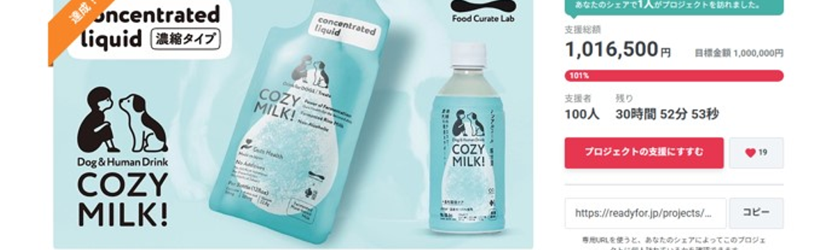 Food Curate Lab株式会社 約1ヶ月前 フォロー 清水 大輔 COZY MILK 濃縮タイプ:クラウドファンディング「Ready For」で目標金額達成しました。 9/27(土)よりクラウドファンディング「Ready For」でCOZY MILK 濃縮タイプのプロジェクトをスタートしておりましたが、多くの方々のご支援を頂き、目標金額を達成いたしました。(募... もっと見る