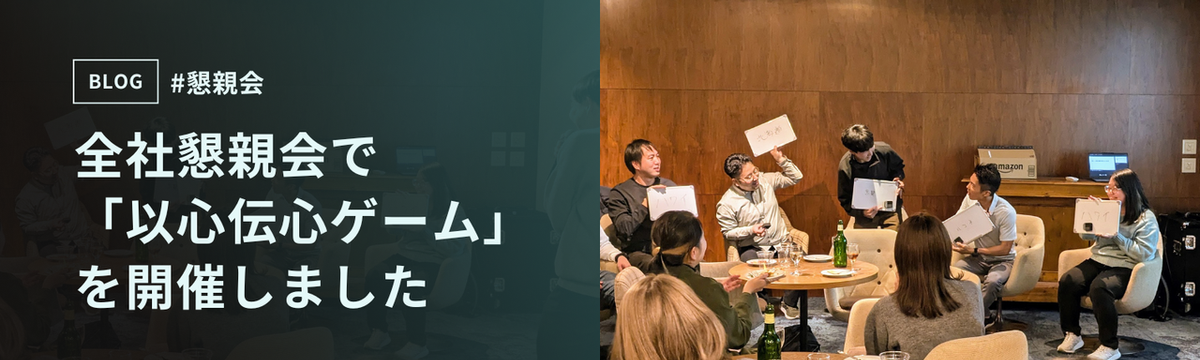 株式会社justInCaseTechnologies 28日前 フォロー 浮ヶ谷 紗織 全社懇親会で「以心伝心ゲーム」を開催しました justInCaseTechnologiesでは月に1度、社内イベントとして全社懇親会(以下、懇親会)を開催しています。12月はメンバーからのリクエストにより「以心伝心ゲーム」を実施しました。チ... もっと見る