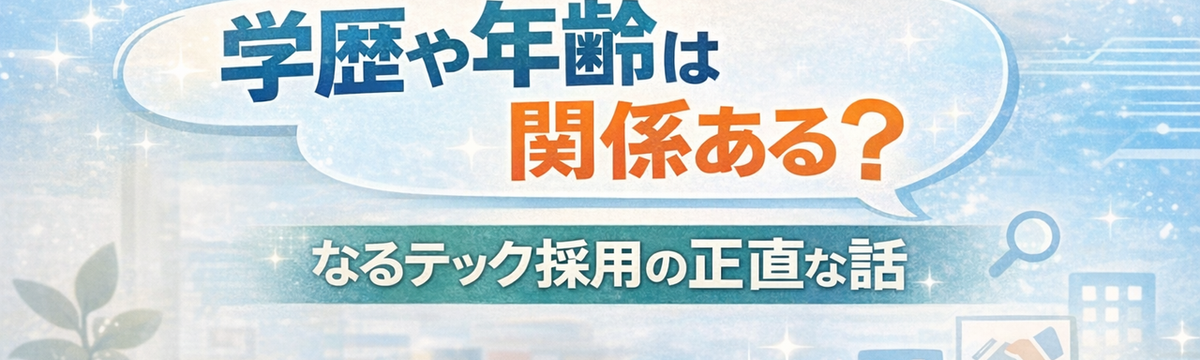 東成瀬テックソリューションズ株式会社 16日前 フォロー 大平 吏佐子 「学歴や年齢は関係ある?」なるテック採用の正直な話 「年齢や学歴は、選考にどの程度影響しますか?」応募前のカジュアル面談で、実際によくいただく質問です。就職や転職では、学歴や年齢というのは切っても切り離せない内容です。学歴で落とされないか、年齢で... もっと見る