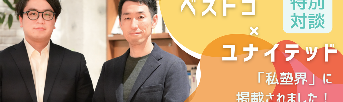 株式会社ベストコ 14日前 フォロー 大和田 知里 他1人 【特別対談】ベストコ×ユナイテッド─「私塾界」に掲載されました! この度、私塾業界の専門誌『私塾界』12月号に、弊社ベストコ代表取締役社長・井関とユナイテッド株式会社 取締役社長・樋口氏の対談記事が掲載されました。ユナイテッドグループへの参画をきっかけに、生成... もっと見る