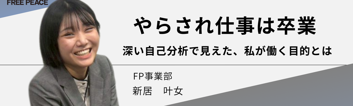 株式会社FREE PEACE 1日前 フォロー 内藤 佑貴 【やらされ仕事は卒業】深い自己分析で見えた、私が働く目的とは こんにちは!フリーピース採用チームです!今回は、新卒1年目の新居さんに、入社後の価値観の変化や上司との対話を通じた学びなどについて、じっくりお話を伺いました。入社して8カ月、新居さんがどのように... もっと見る