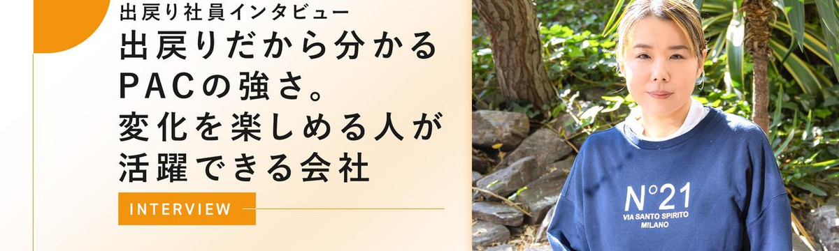 株式会社PA Communication 12日前 フォロー 三浦 優奈 【出戻り社員インタビュー】出戻りだから分かるPACの強さ。変化を楽しめる人が活躍できる会社 今回話を伺ったのは経営企画室長の高橋祐子さん。1度PACを退職後、再び戻ってきて活躍している”出戻り社員”でもあります。再度働きたいと思った背景や、会社の魅力についてもお話していただいたので、ぜ... もっと見る