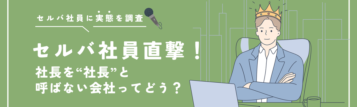 株式会社セルバ 27日前 フォロー U A 他1人 【セルバ社員に直撃アンケート!】社長を“社長”と呼ばない会社ってどう? タイトルを見て「社長のことは社長じゃないの!?」と驚かれた方も多いでしょう。何を隠そう、セルバ社員は社長のことを「中山さん」と呼んでいるのです。筆者は入社した当時、この事実に驚きを隠せませんでし... もっと見る