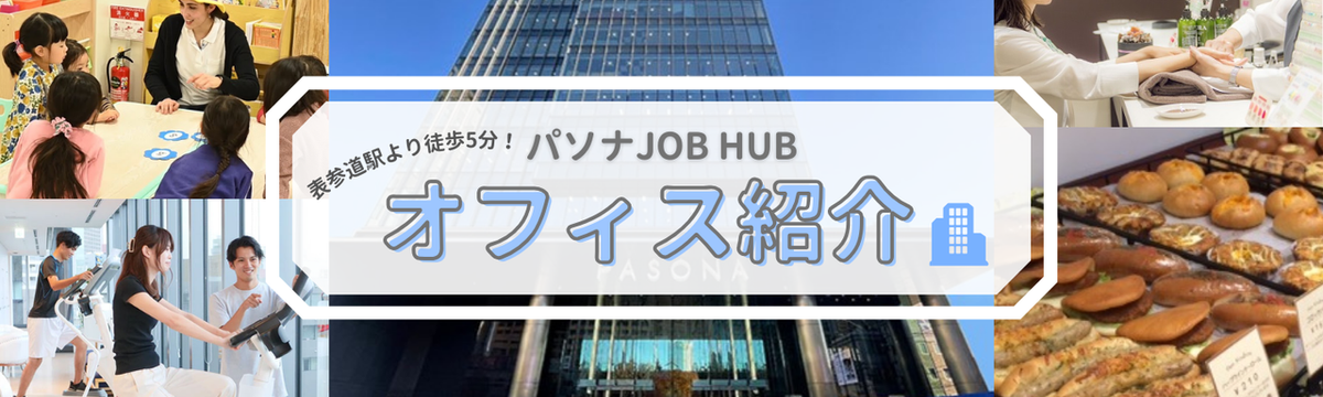 株式会社パソナJOB HUB 17日前 フォロー 髙松 玲花 焼きたてパン、ジム、保育園まで!表参道駅から徒歩5分!パソナJOB HUBの働く環境をご案内。【オフィス紹介】 こんにちは、採用担当の髙松です!いつも記事をご覧いただき、ありがとうございます。🌟パソナJOB HUBとは?:パソナグループの戦略子会社として2018年に誕生。「HUB a good futur... もっと見る