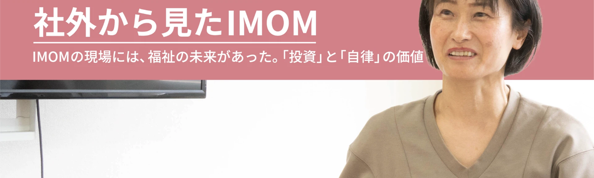 株式会社IMOM 約16時間前 フォロー 入木 太致 社外から見たIMOM|IMOMの現場には、福祉の未来があった。「投資」と「自律」の価値 こんにちは!株式会社IMOM(イムオム)のPR担当、入木(いりき)です!いつもnoteを読んでいただき、ありがとうございます。これまでは社内のインタビューや出来事を中心に発信してきましたが、どう... もっと見る