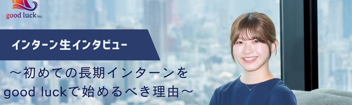 good luck株式会社 8日前 フォロー 平塚 結 初インターンがgood luckで良かった理由 - 留学中も続けた学生人事コンサルの挑戦 初インターンがgood luckで良かった理由 - 留学中も続けた学生人事コンサルの挑戦こんにちは!good luck株式会社採用広報の平塚です!「長期インターンに興味はあるけど、自分にできるか... もっと見る