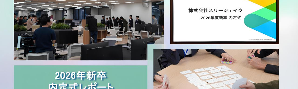 株式会社スリーシェイク 7日前 フォロー 採用担当 スリーシェイク史上最大規模!新オフィスで開催した26年新卒 内定式のレポートをお届け! はじめにこんにちは!株式会社スリーシェイク 採用担当の渡邊です。2025年11月、スリーシェイクでは2026年4月に入社予定の皆さんをオフィスにお迎えし、内定式を執り行いました。今年は、スリーシ... もっと見る