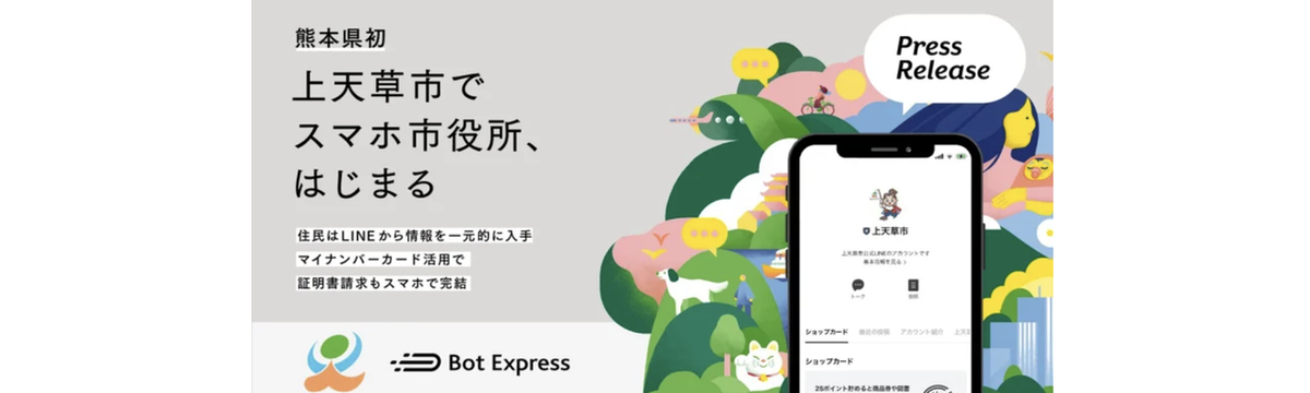 株式会社Bot Express 2年弱前 フォロー Hori Kanako 熊本県初、上天草市がGovTech Expressを活用し「スマホ市役所」を開設 9月29日、熊本県上天草市(市長:堀江 隆臣)がGovTech Expressを活用し、上天草市LINE公式アカウントから行政手続きが可能となる「スマホ市役所」を開設しました。避難所検索、ポイ捨... もっと見る